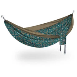 Die SkyLoft Hammock Hängematte von ENO ist sowohl zum Schlafen als auch einfach zum Relaxen in der freien Natur konzipiert. Sie besitzt ein cleveres Umschaltsystem, das es erlaubt, zwischen den gewünschten Modi „Relax“ oder „Sleep“ zu wechseln, um sie somit der jeweiligen Situation anzupassen. Mit den zwei mittigen Nylontaschen aus Stretch sind Schlüssel, Smartphone oder Geldbörse stets griffbereit und geschickt verstaut. Zusammengepackt dient diese Hängematte aus NewWave Nylon als praktisches und gemütliches Kopfkissen. Das Setup ist zudem sehr leicht und im Handumdrehen erledigt.