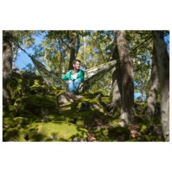 Die Colibri 3.0 von La Siesta ist die perfekte Reisehängematte. Durch ihren leichten, dünnen aber robusten Nylon-Stoff hat sie ein kleines Packmaß und kann in der angenähten Tasche platzsparend verstaut werden. Diese dient im aufgehängten Zustand als Aufbewahrungsfach für ein Buch oder Snack. Das 40 mm breite Aufhängesystem ist fest mit der Hängematte verbunden. Es kann mit Haken aus strapazierfähigem Flugzeug-Aluminium gespannt werden und besitzt einen Baumschutz um die Rinde vor zu hohen Belastungen zu Schützen. Das gesamte Paket wiegt nur 0,8 Kilogramm, es passt also in jeden Rucksack. Die Colibiri hat eine große Liegefläche und ist mit einer Belastbarkeit von 180 Kilogramm für zwei Personen geeignet. Praktisch: Sie kann auch als Picknickdecke verwendet werden.