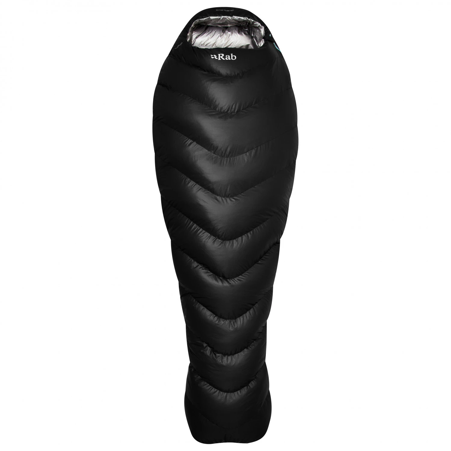 Gefüllt wurde das wertige Stück von Hand mit europäischer Gänsedaune aus artgerechter Tierhaltung am Rab Produktionsstandort Derbyshire (England).Die komfortable Mumienform mit Wärmekragen und 3D-Kapuze bettet den Kopf in angenehm weiche, warme Daunen und schützt ihn ohne einzuengen. Ein abgewinkelter Fußbereich hält die unterste Körperpartie angenehm warm und bietet dabei ausreichende Bewegungsfreiheit für die Beine.