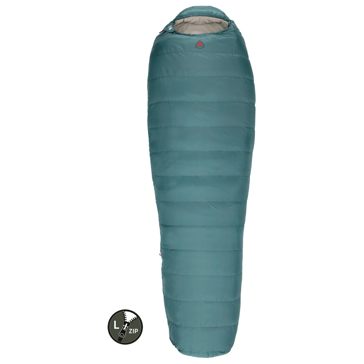 In der warmen Kapuze lässt sich ein Kissen sicher verstauen. Der Schlafsack lässt sich seitlich komplett öffnen und mit einem zweiten Schlafsack kombinieren. Für Wertsachen sind die beiden Innentaschen praktisch. Ein durchdachter Schlafsack für Camper und Trekker!